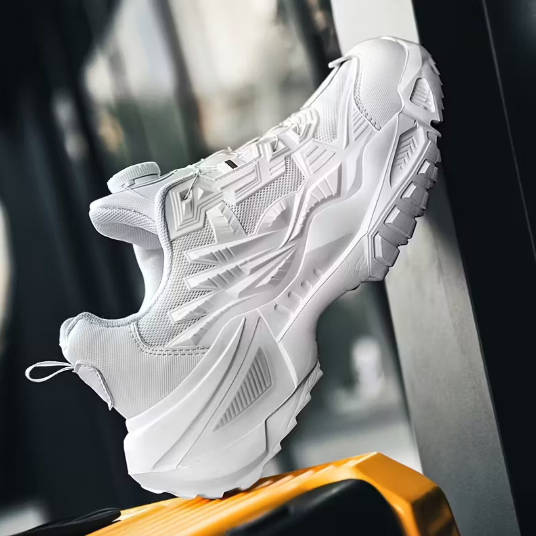 Estes ténis desportivos de luxo são o calçado perfeito para o homem moderno. A sua inovadora fivela giratória estilo mecha confere-lhes um toque de alta tecnologia e um visual único. A combinação de um design sofisticado e materiais de primeira qualidade torna-os a opção ideal para quem procura um calçado que combine estilo e desempenho.